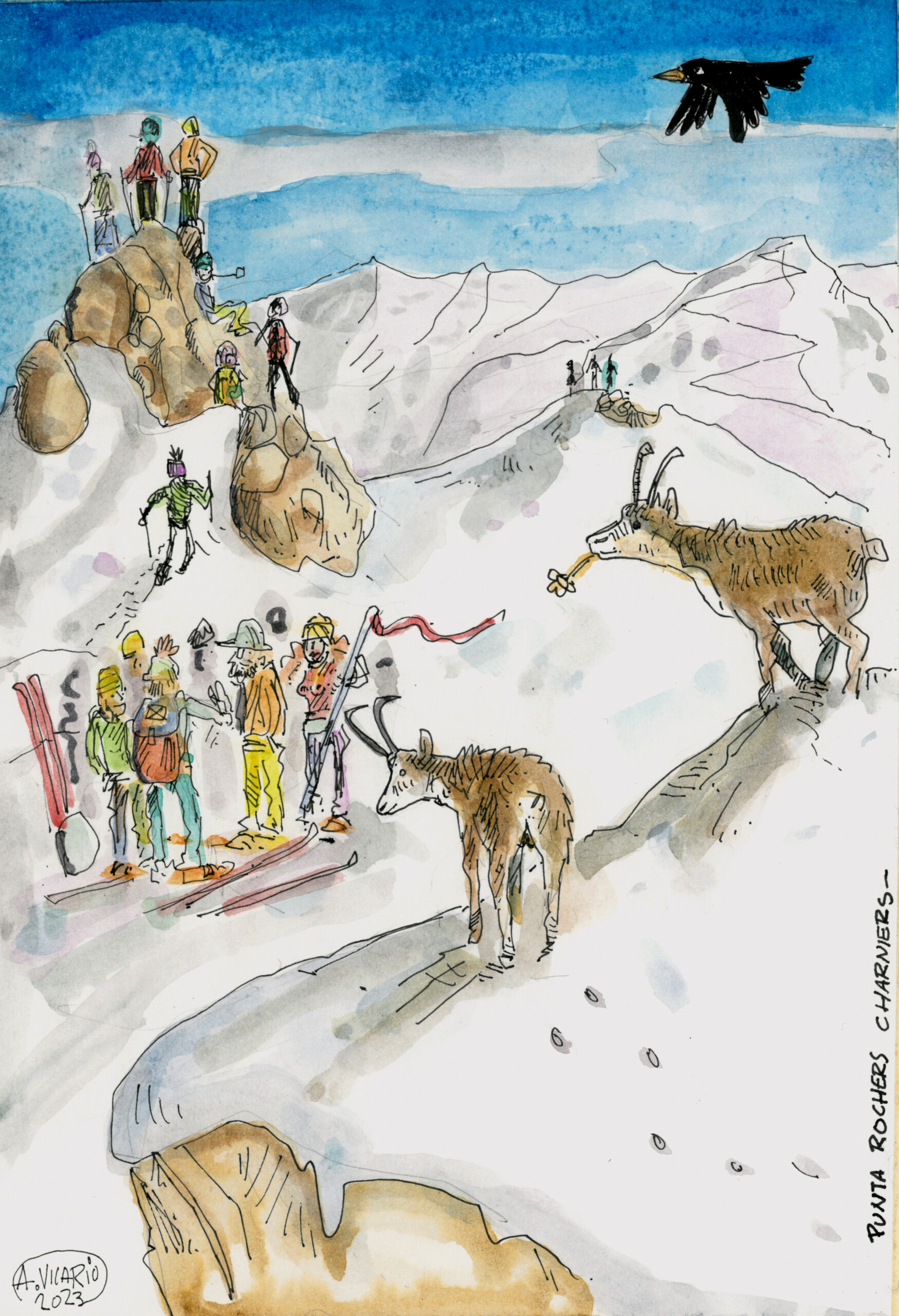 Ci sono montagne che si mostrano poco alla volta, cime che si nascondono man mano che ci si avvicina. Si riparano schive dietro colli e montarozzi cosicché la strada dello scialpinista si spezzetta in tante salite e speranze infrante, mentre uno sci dopo l’altro si suda e ci si affatica lungo i suoi pendii. Rochers Charniers è una di queste.