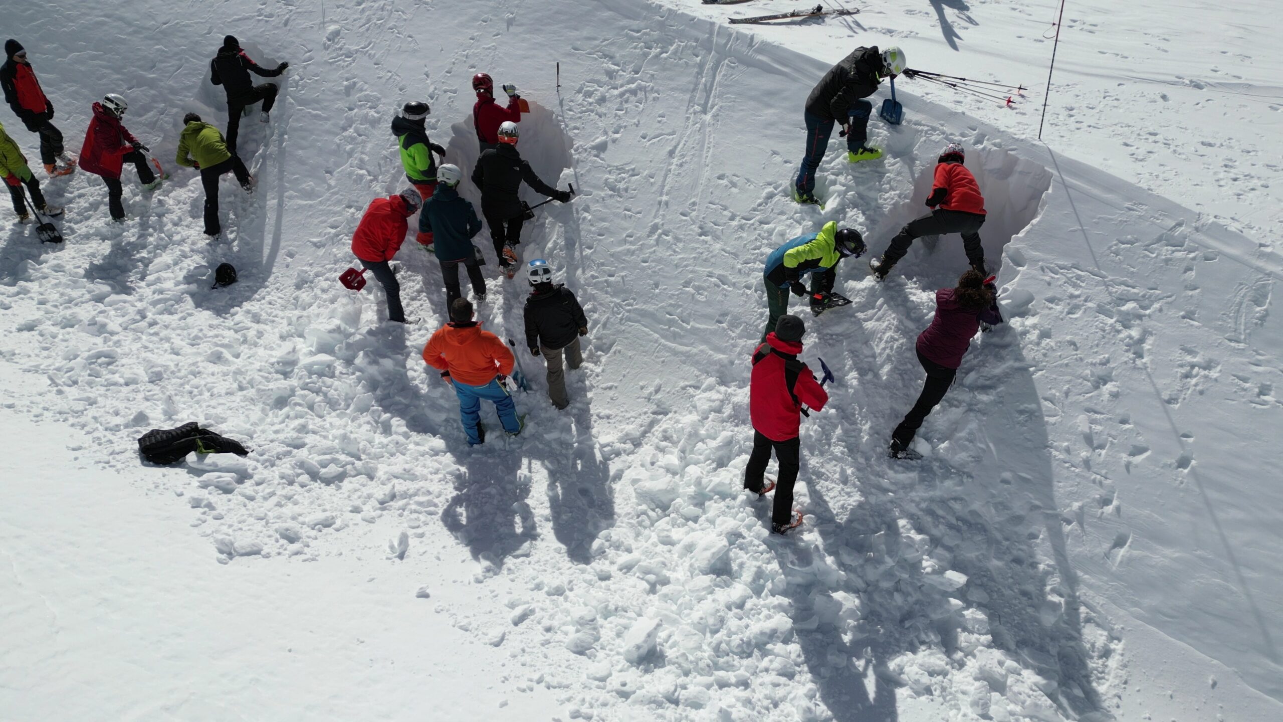 Al termine del primo pendio il divertimento viene interrotto dalla consueta simulazione di scavo con pala e sonda… Proprio quando pensavi che la fatica fosse terminata.. Ecco qui la parte più impegnativa della gita 🙂 Quasi due metri di scavo, in tempistiche piuttosto vergognose… Ma sicuramente un’utilissima esperienza, già solo per non dimenticare mai la difficoltà che tale manovra richiede, che ti spinge a riflettere bene prima di poterti avventurare in situazioni ambigue e pericolose…