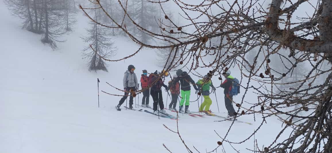 Un gruppo di impavidi avventurieri, presi dall’entusiasmo e dalla passione per le imprese pionieristiche, decide di abbandonare la traccia dei primi tre gruppi per avventurarsi in un meraviglioso bosco, con tanta neve, soffice e farinosa (solo a tratti crostosa), soprannominato in seguito BOSCO DELLE FATE per la singolare bellezza . L’avventura ci ha portato a fare delle goduriose serie di inversioni su neve super soffice, ci ha permesso di vedere panorami mozzafiato, ma soprattutto di scendere su neve intonsa con le pelli ancora attaccate agli sci! …esperienza quasi mistica che, da neofita di questo sport, non credevo fosse possibile fare!Bellissimo!!! bravissimi gli istruttori che ci hanno guidato in questo viaggio meraviglioso!!!!