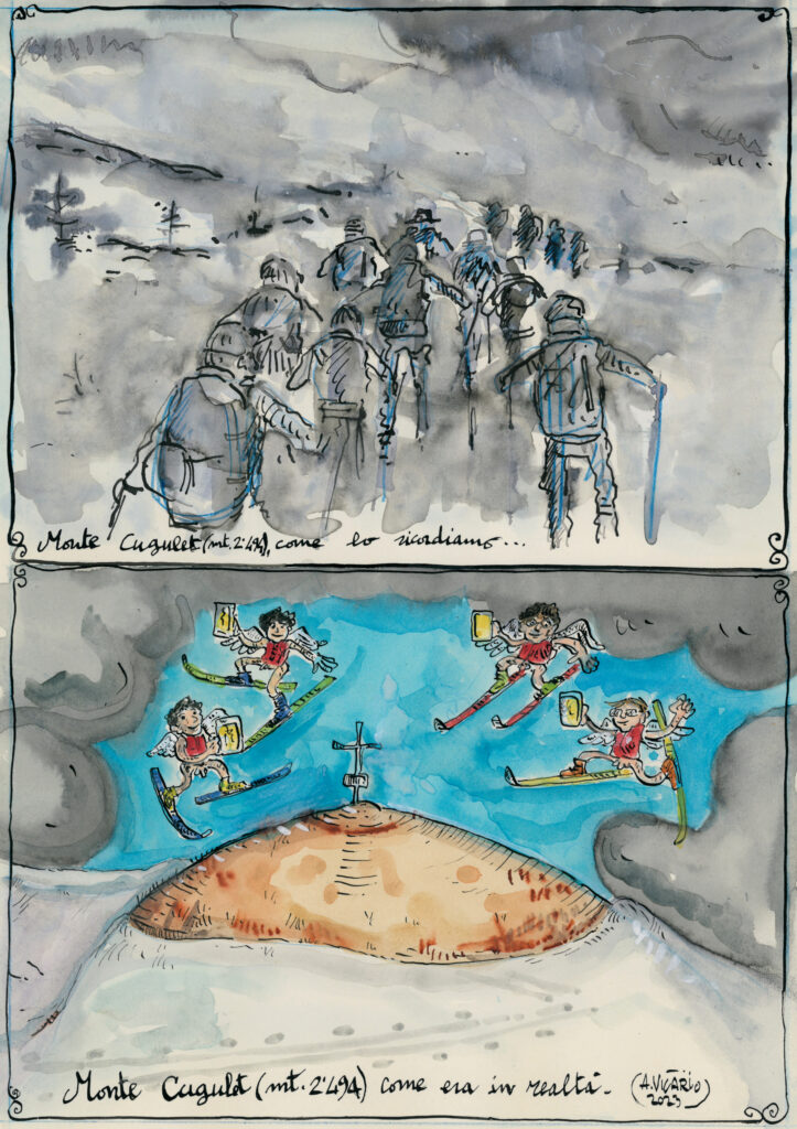 Giovanni, a mio avviso, potrebbe essere una perfetta incarnazione di un po’ tutti noi del corso; si alza presto il mattino, lavora tutta la settimana, e suda per conquistare “la sua montagna”, con il perenne timore che il proprio sudore sia “lo sforzo di un fesso”.