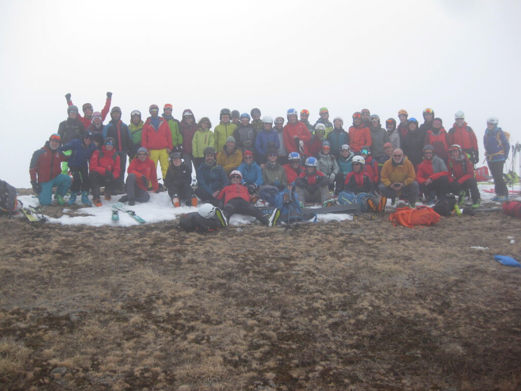 Una volta arrivati in cima, alcuni gruppi hanno deciso di scendere subito un po’ godendosi la bella neve e ripellare, giusto per fare ‘un po’ di dislivello’ dato che la gita era 1100m 😀, ma soprattutto per godersi la neve! C’e’ stato comunque tempo per tutti/e di godersi il sole, la cima non troppo ventata, riposare le gambe, e godersi il panorama!