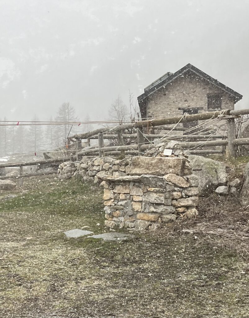 A questo punto si ode una voce che dice “Domani colazione alle 6 e partenza alle 7”… Silenzio… La padrona di casa dice: ”Ehhh veramente noi saremmo pronti dalle 6,30”. Ehh santa donna, ha fatto guadagnare al gruppo 30 minuti di sonno, le voglio già bene. Inizia a nevicare…
