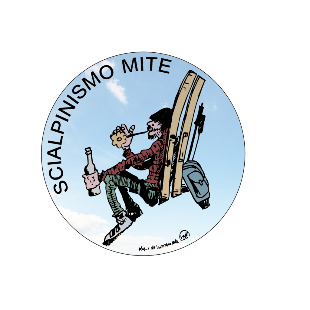 Arriva il momento della cena. Il menu è di ottimo livello sia per qualità che quantità, e ci si butta sul cibo per sfogare un po’ di tensione accumulata. Durante la cena Cavour comunica che la corrente filosofica dello “Scialpinismo mite”, da lui fondata in netta antitesi con la tendenza iper-performante dello scialpinismo moderno, ora ha anche un logo e dei gadget”. Dopo un po’ di perplessità iniziale, le ordinazioni di spille, toppe e magliette con il nuovo logo partono. Per chi fosse interessato è possibile ordinare il vostro gadget scrivendo a enrico.galasso@gmail.com