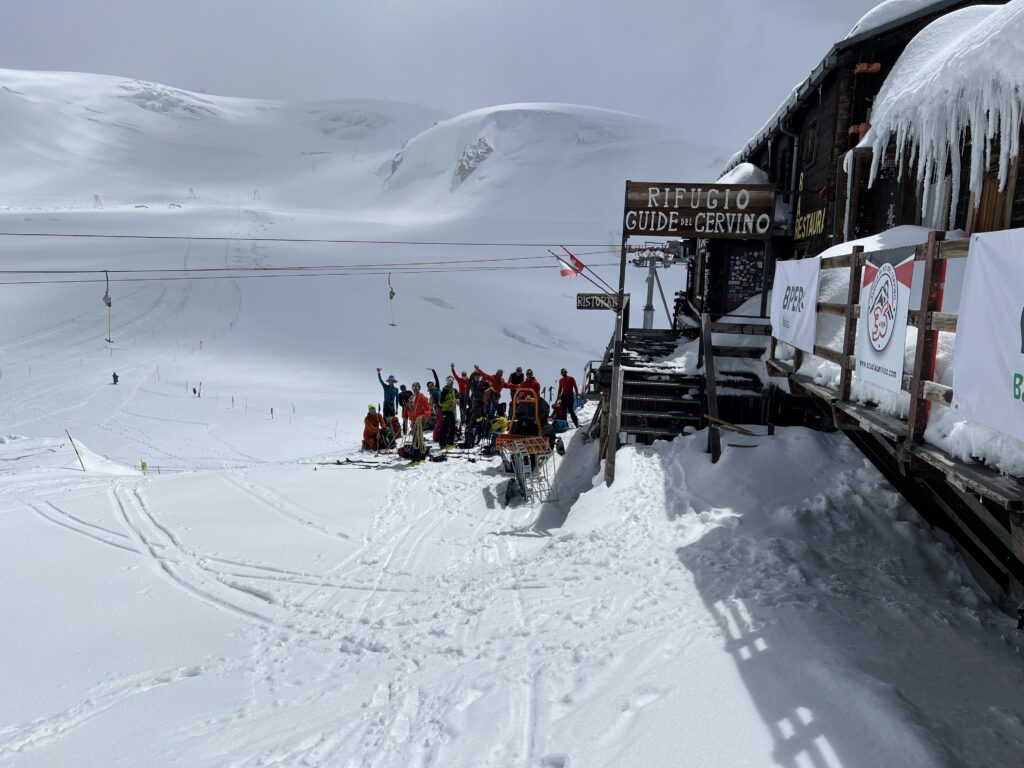 Inevitabilemente nella parte finale della discesa la neve diventa una pappa (ci ricordiamo che in realtà siamo a Maggio…), ma ormai siamo già arrivati a Cervinia e dopo una birra e un panino con allievi e istruttori ci dirigiamo all’hotel Bijou a Saint Vincent, che ci ospiterà per la notte.