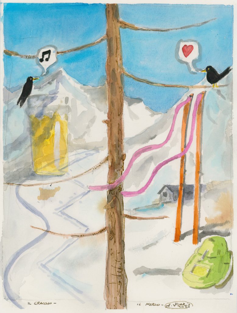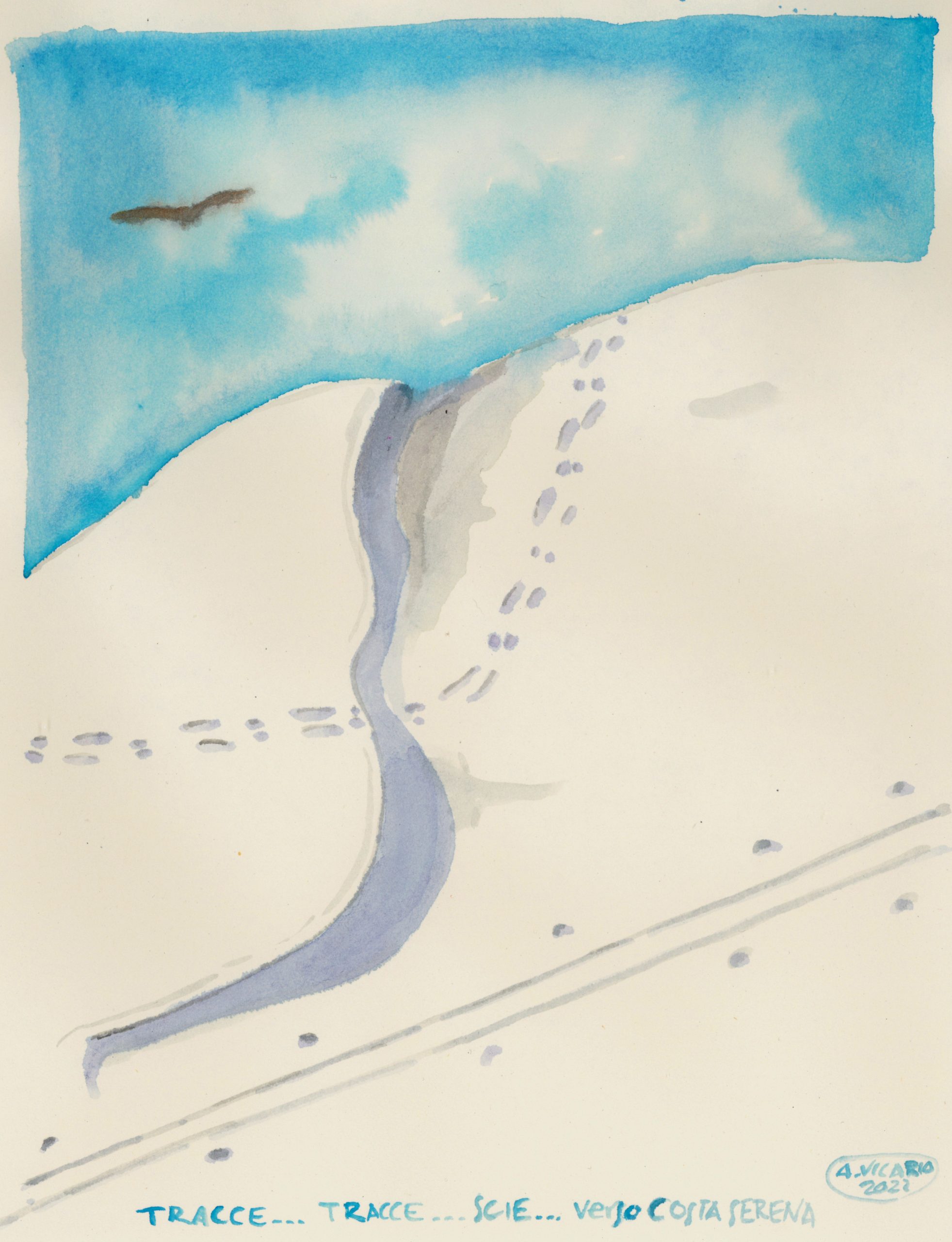 8. Incamminarsi lungo la strada che punta al Sigaro partendo dall’ Hotel Foyer de Montagne, cercare di saltare da una striscia di neve e asfalto all’altra, non preoccuparsi troppo di procurare righe sotto gli sci, a questo punto due in più o due in meno non si vedono nemmeno, anzi stanno ad indicare che il mestiere sta entrando alla grande!!