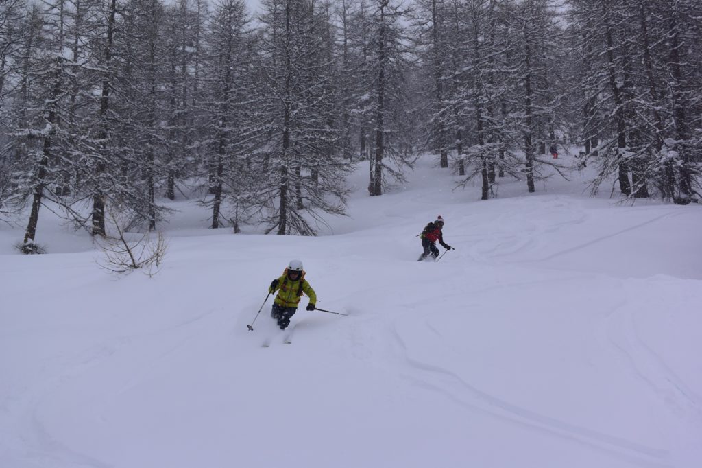 Che Dario abbia preso bene l’idea di potersi occupare della nostra scuola ancora per molto tempo e non dell’Universo intero, lo si capisce dal fatto che, con massima fiducia negli istruttori, si butta a rotta di collo giù dai pendii di Vinavil. Il temuto ordine della “traccia unica” non sembra neanche sfiorare la sua mente.