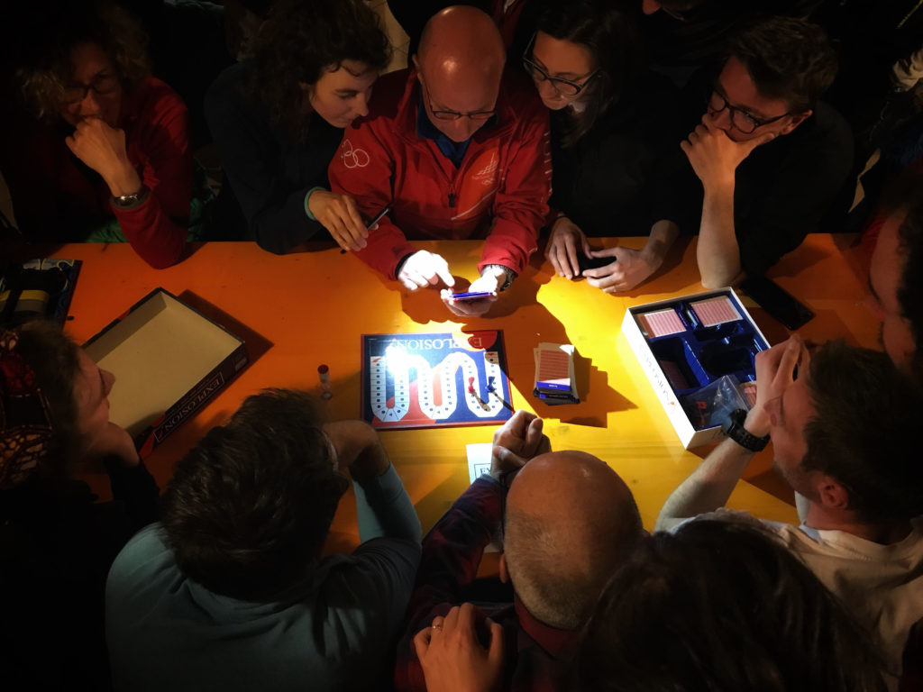 Ma torniamo alla cena tutti insieme. Il vino frizzantino dei colli Piacentini a 12 euro la bottiglia non è una dispercezione. E neanche la manche corale ad Explosion!. Rimarrà sempre impressa nelle nostre menti l’input perverso “parti di un frigo”. Sergio sembra avere la visione a raggi X di Superman riuscendo a leggere le parole sulla scheda nascosta! Nonostante questo, dopo sofferta partita, la parte del gruppo esposta ad ovest batte, in recupero, la parte del gruppo esposta ed est. E poi tutti a nanna senza voce.