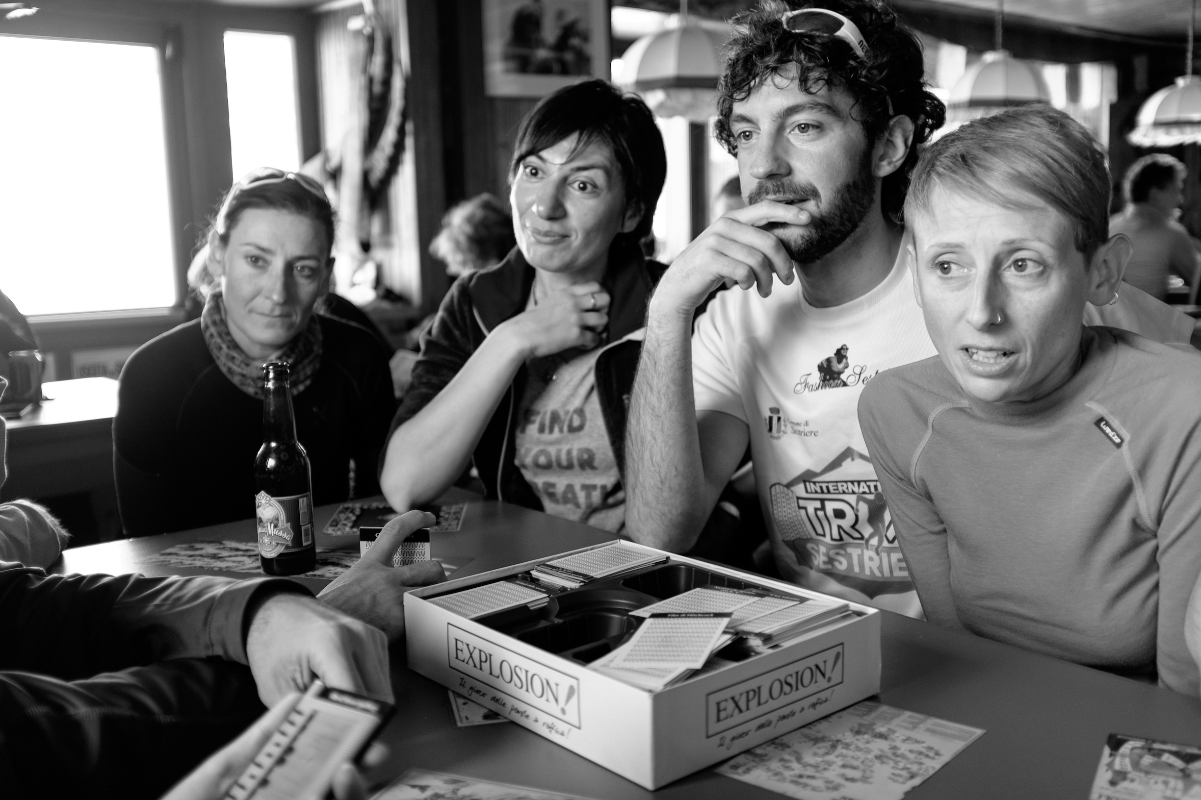 Ma torniamo alla cena tutti insieme. Il vino frizzantino dei colli Piacentini a 12 euro la bottiglia non è una dispercezione. E neanche la manche corale ad Explosion!. Rimarrà sempre impressa nelle nostre menti l’input perverso “parti di un frigo”. Sergio sembra avere la visione a raggi X di Superman riuscendo a leggere le parole sulla scheda nascosta! Nonostante questo, dopo sofferta partita, la parte del gruppo esposta ad ovest batte, in recupero, la parte del gruppo esposta ed est. E poi tutti a nanna senza voce.