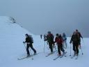 La nebbia non facilita l’individuazione del percorso da seguire, tant’è che Livio ha appena il tempo di comunicare via radio ai gruppi che seguono di non seguirlo che un cupo boato annuncia il distacco di lastroni di neve.