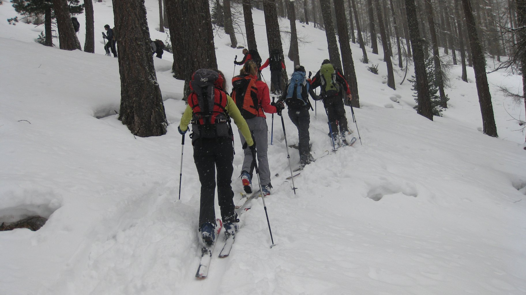 Il fiocco di neve che questa mattina ha deciso di accompagnare i primi passi della nostra salita venendoci incontro dall’alto non ha dato sfoggio della sua più bella forma ricca di dendriti. Questa la prima risposta che si raccoglie dalla voce di un istruttore. La stessa voce aiuta alcuni allievi a leggere il territorio che ci circonda in rapporto alla sua predisposizione alla generazione di valanghe; la posizione e l’esposizione dei versanti, dei canaloni, dei larici, nostra, tutto assume un nuovo punto di vista in rapporto ai depositi di neve e ai loro possibili movimenti in base alle correnti. L’attenzione dei presenti è catturata e tutti si pende dalle sue spiegazioni finché arriva ad accennare la teoria del Tubo di Venturi, …in quel momento qualche allievo mostra qualche problema alle sinapsi del sistema neuronale del cervelletto…