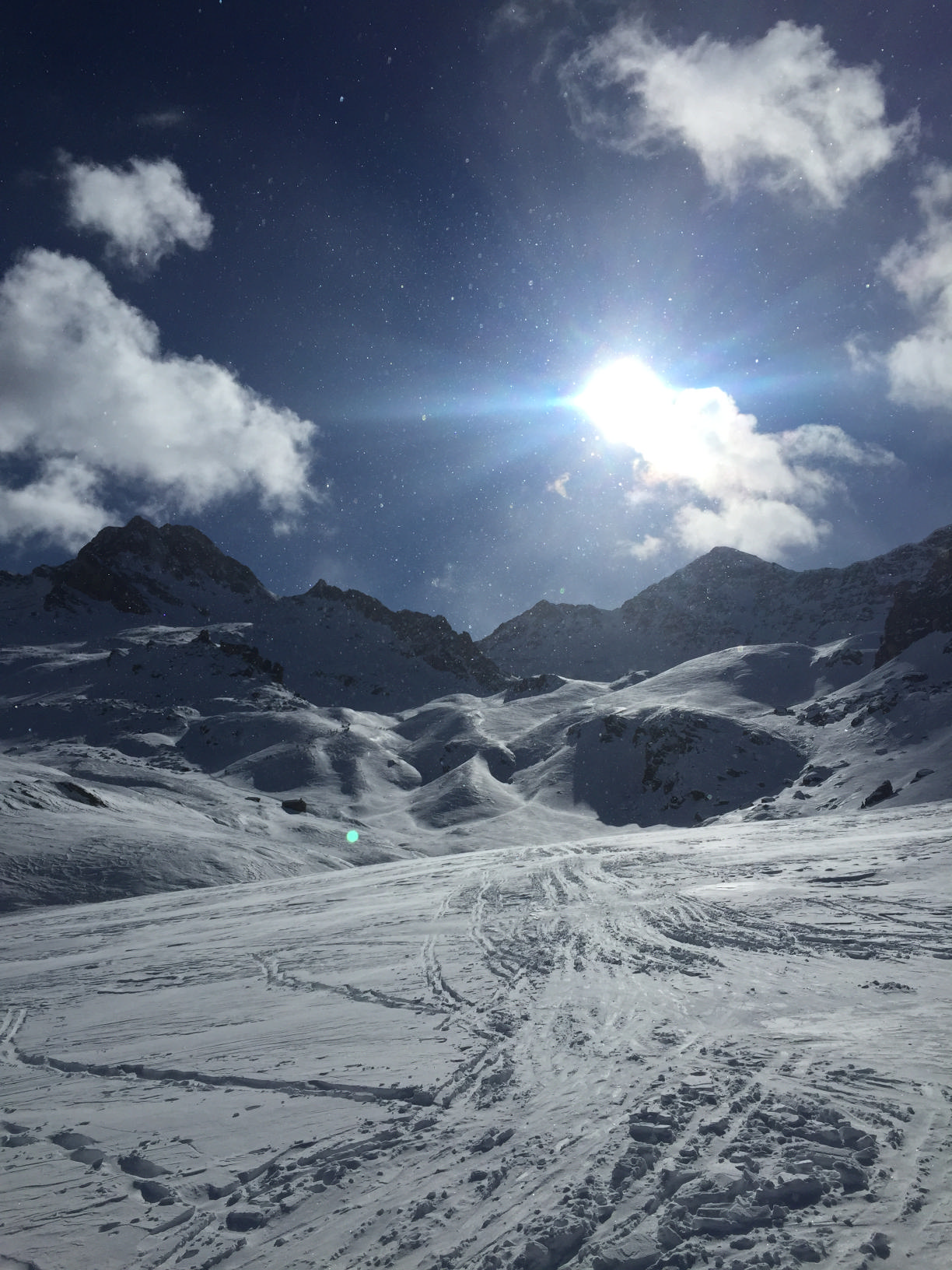 Mano a mano che saliamo troviamo cumuli di neve riportata, neve dura ventata, neve quasi ghiacciata, “crateri” e buche vicino alla meta. Immancabili pietre e pietrone scoperte dal vento. Un ringraziamento particolare a Vittorio Barella detto “Quark” per le spiegazioni sui tipi di neve..!