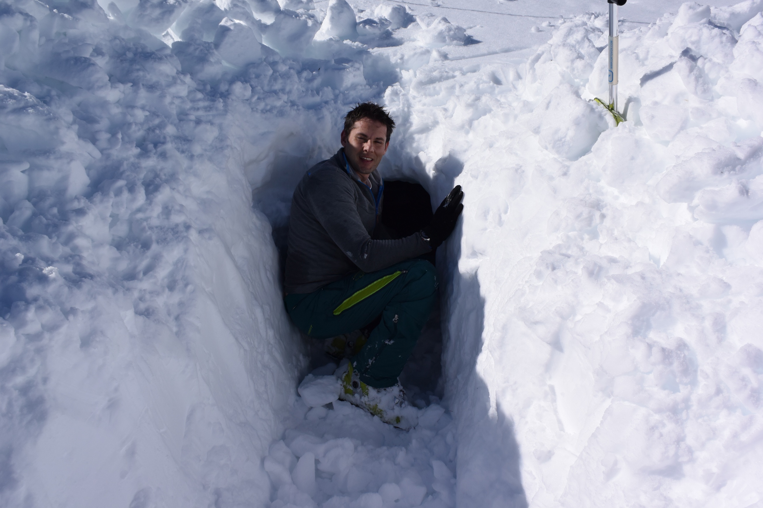 Un manipolo di forti istruttori, prossimi ad un esame, si sono esibiti, sotto lo sguardo ammirato degli allievi, nella realizzazione di un confortevole bilocale (tecnicamente definito truna), scavato sotto la neve a forza di braccia.