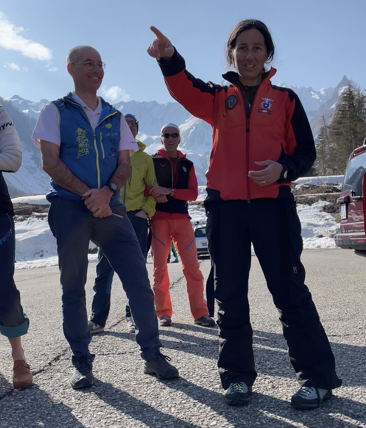 improvvisa voglia di scavallare il confine, decidono di imboccare la strada per il traforo che porta in Svizzera perdendo così del tutto la credibilità e l’affidabilità (dopotutto, la parte del corso focalizzata su cartine e bussola è ormai un ricordo lontano). In soccorso arriva tuttavia il nostro istruttore che, dopo non poche peripezie tecnologiche, riesce a riportarci sulla retta via e a condurci sul luogo di partenza della gita. A questo punto, l’orario di inizio è oltrepassato e metà dei nostri compagni sono già partiti lungo la linea di salita…per i poveri ritardatari non resta che